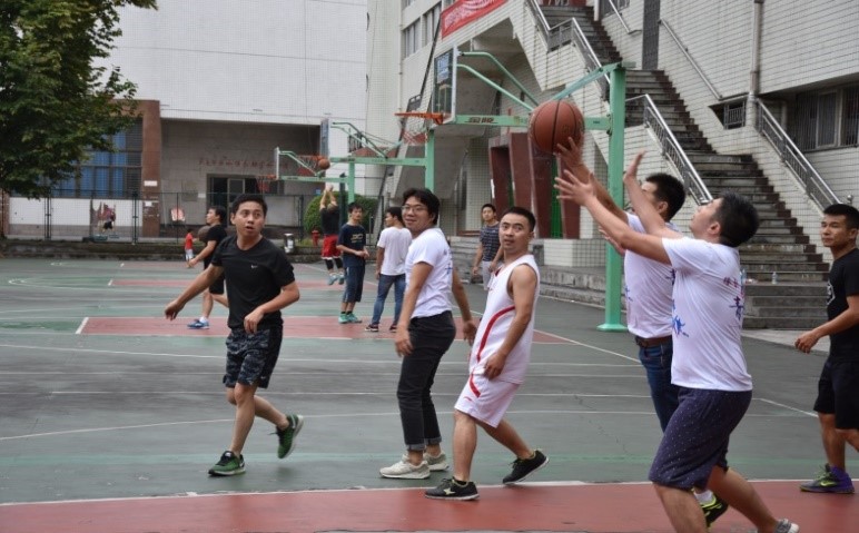 图为校友们举行友谊篮球赛龙洪春摄