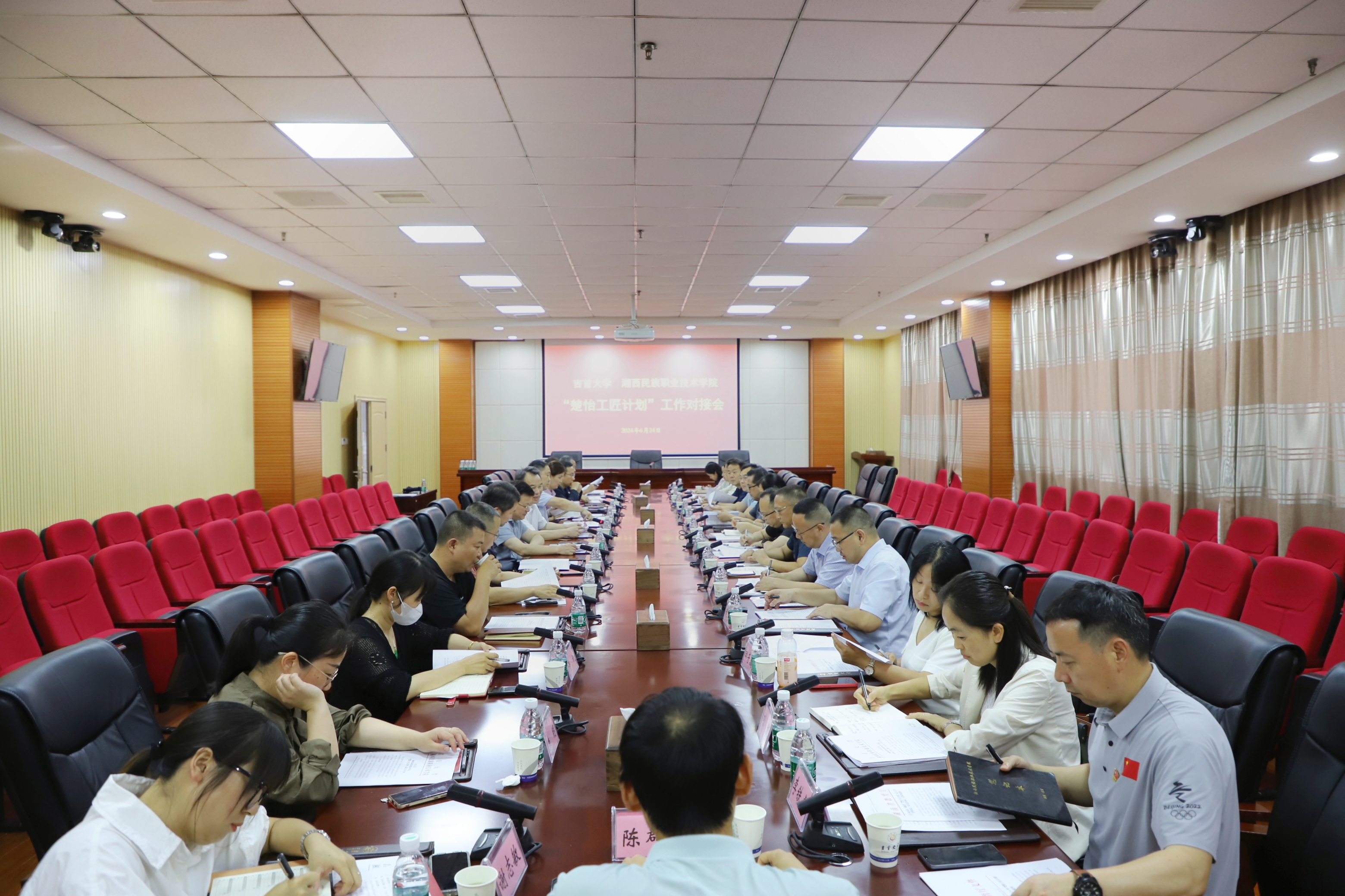本网讯(李可怡 杨雯慧)为贯彻落实省教育厅决策部署,全力做好“楚怡工匠计划”试点专业食品科学与工程本科层次技术技能人才联合培养工作,6月24日下午,我校与湘西民族职业技术学院在齐鲁大楼六楼国际会议厅召开“楚怡工匠计划”工作对接会。我校党委委员、副校长冷志明,湘西民族职业技术学院党委副书记、校长翁波,党委委员、副校长陈杨晖及两校相关职能部门和学院负责人参加会议。本次会议由我校教务处处长刘晗主持。